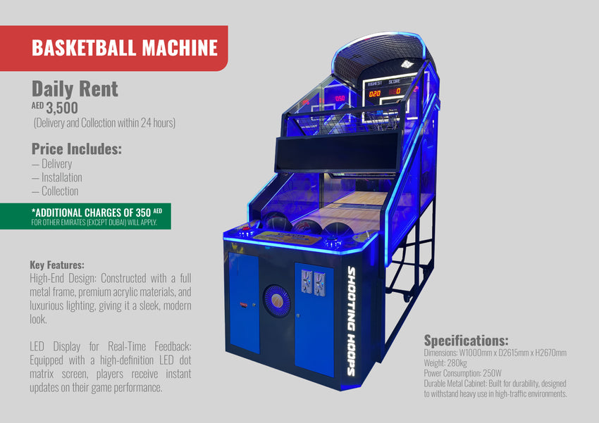 Make your gathering a slam dunk with our Champion Basketball machine. Perfect for any event, it will bring energy and excitement. Its dynamic design will draw in your guests. Your family, colleagues, and friends will love the challenge.