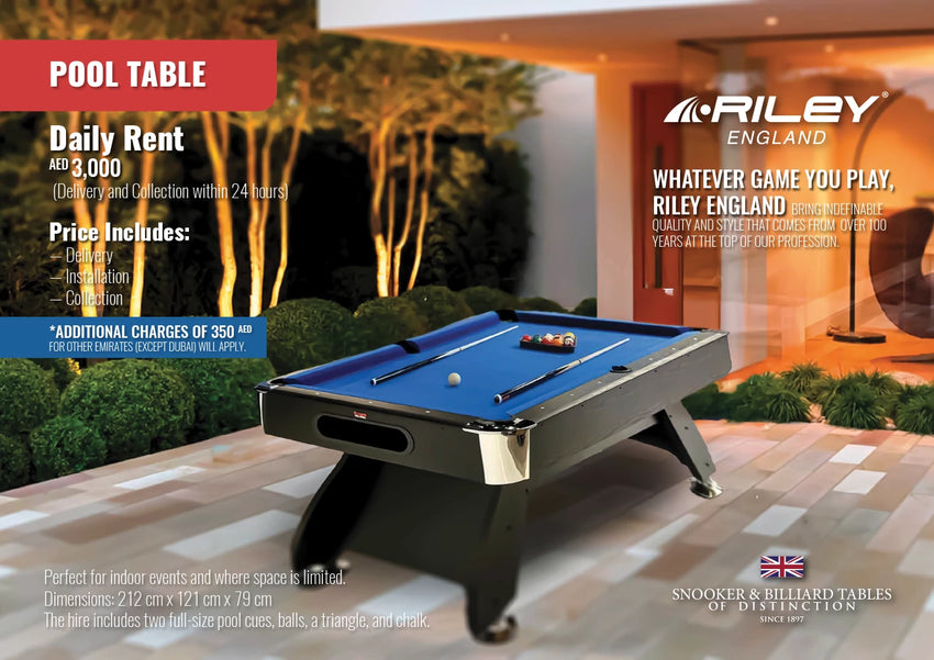 Make your birthday party a hit with our Champion Pool Table. It will bring excitement and fun to your celebration. Its sleek black design and vibrant blue felt will captivate your guests. Your family, colleagues, and friends will be thrilled.